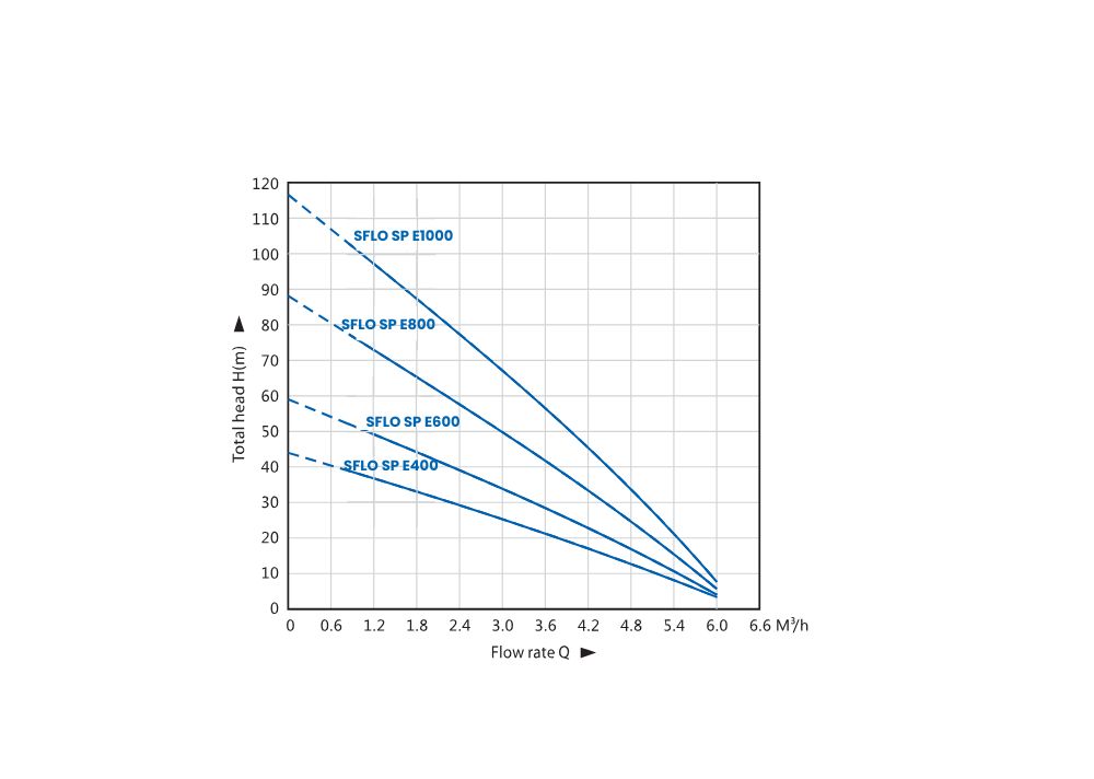 • Work close to the rated head and must be immersed in water.