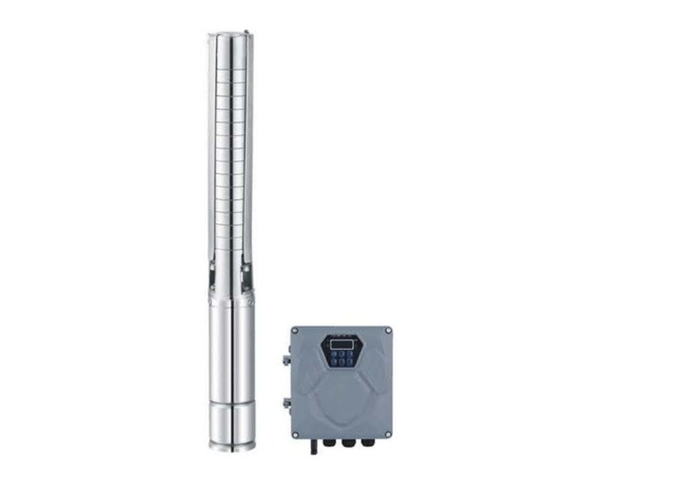 A multistage centrifugal submersible pump designed for borehole and well water supply, featuring hybrid capability to operate on