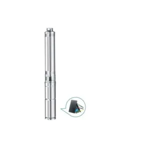 A multistage centrifugal submersible pump designed for borehole and well water supply, featuring hybrid capability to operate on