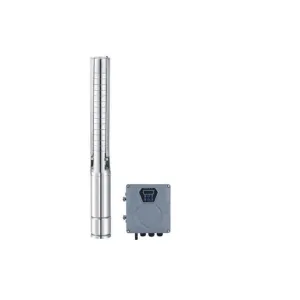 A multistage centrifugal submersible pump designed for borehole and well water supply, featuring hybrid capability to operate on