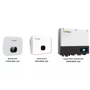 4. Grid-Tied Solar Installations: Growatt inverters are commonly used in grid-tied solar installations. They convert solar-generated DC power to AC power for consumption within the premises. Any excess power can be fed back into the grid, allowing for net metering and potential energy credits.